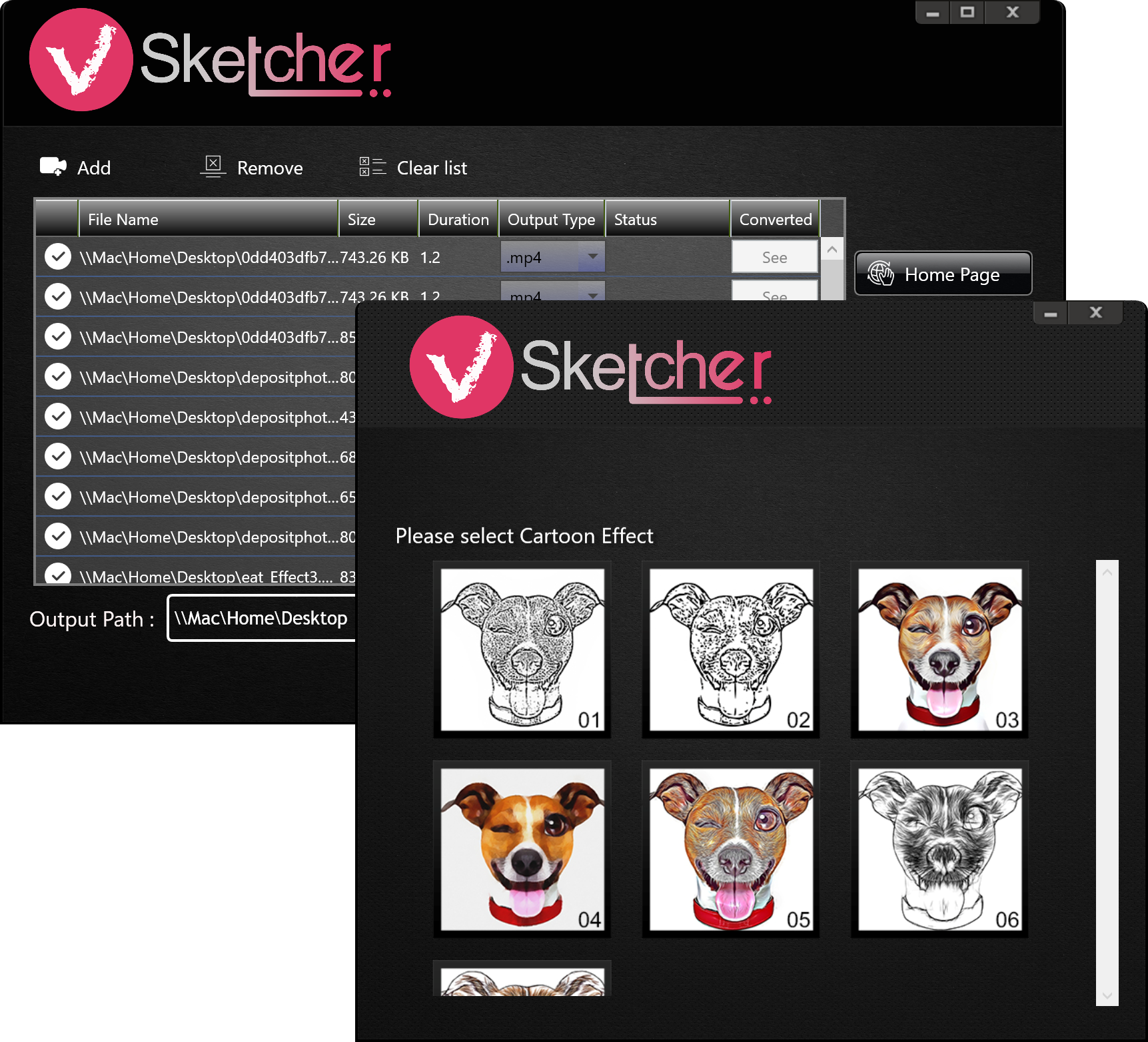 Actually we have 4 Softwares: VCartoonizer, VSketcher, Video Cartoonizer, and VPopArt.